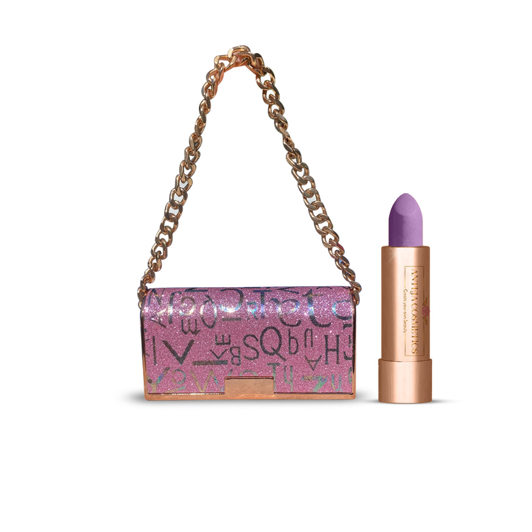 Be prepared to make a statement with this hand-made lavender shade lipstick. Dimension is a Purse Lipstick with a matte finish. This purse lipstick's unique shape and design are perfect for your pocket or purse. Add a pop of color to your lips with this perfect size lipstick.