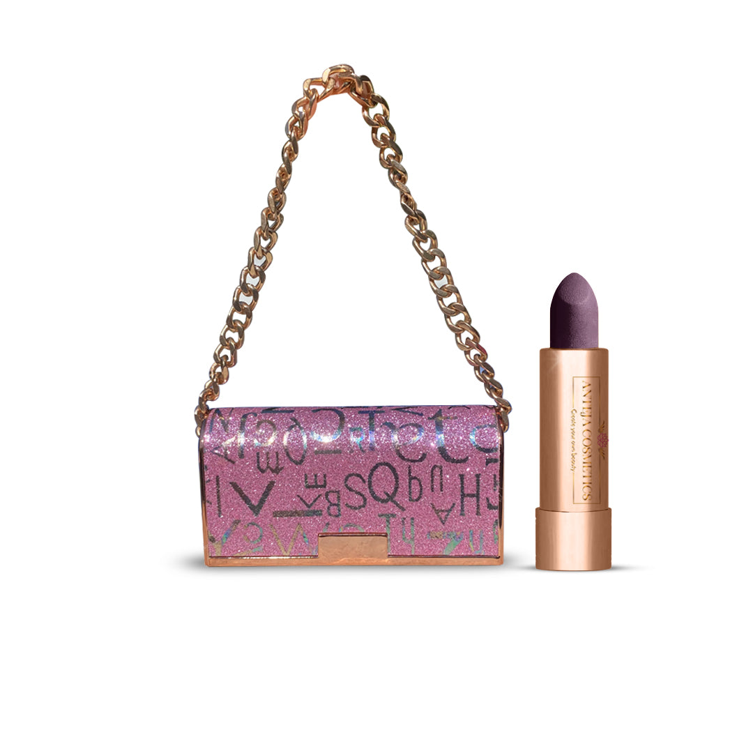 Get ready for a starry night out with this purse lipstick color Galaxy. Galaxy is a dark purple with hints of light purple and pink. This color is perfect for an evening out, a formal event, or even just for everyday wear. Pair this with a smokey eye and head out to see the stars!