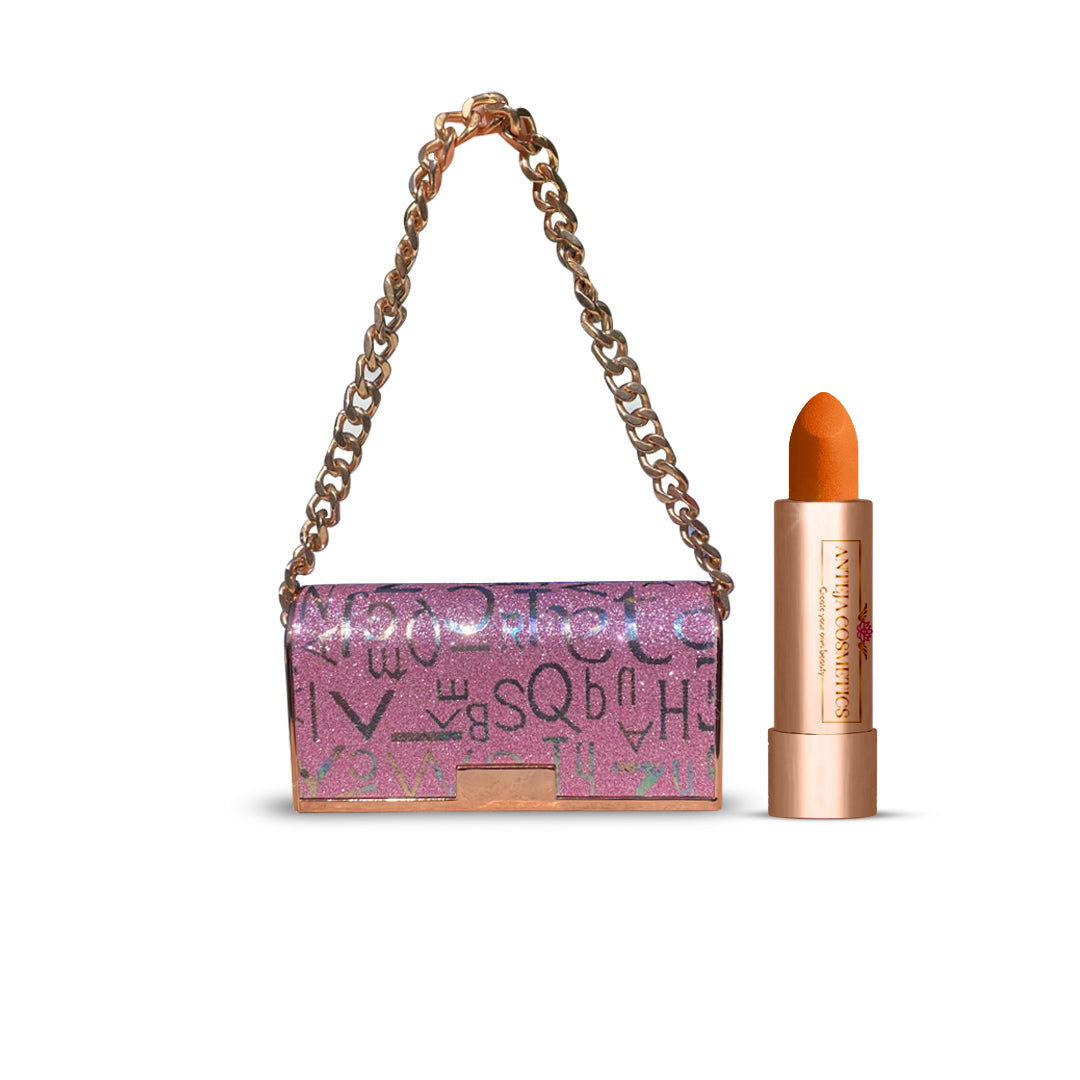 Get a burst of color with this purse lipstick. Be prepared for any situation with this purse lipstick that can fit in your bag. Whether you need a touch up or just want to change the color, this lipstick is made for you. This lipstick is handmade and the color is made to match the sunset, which is perfect for all skin tones.